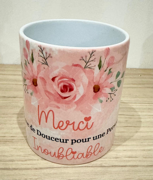 Mug Cadeau Personnalisé – “Merci” avec Motifs Floraux ou Enfantins 🌸🌈
