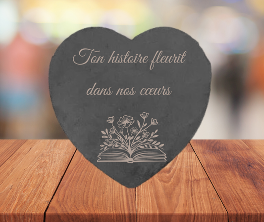 ❤️ Ardoise funéraire en forme de cœur – Motifs Livre fleuri