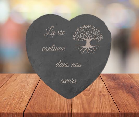 ❤️ Ardoise funéraire en forme de cœur – Motifs Arbre de vie