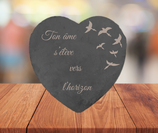 ❤️ Ardoise funéraire en forme de cœur – Motifs Oiseaux en vol
