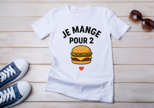 T-shirt humour – "Je bois pour 3" 🍺 / "Je mange pour 2" 🍔