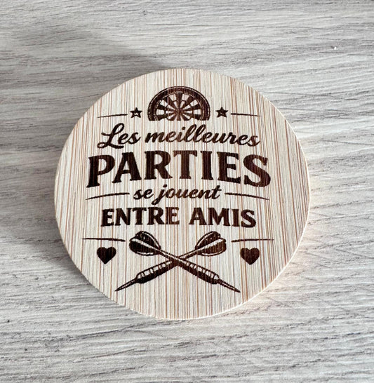 🍺 Décapsuleur en bois gravé – Fléchettes & apéro