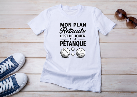 T-shirt humour – Mon plan retraite c’est de jouer à la pétanque