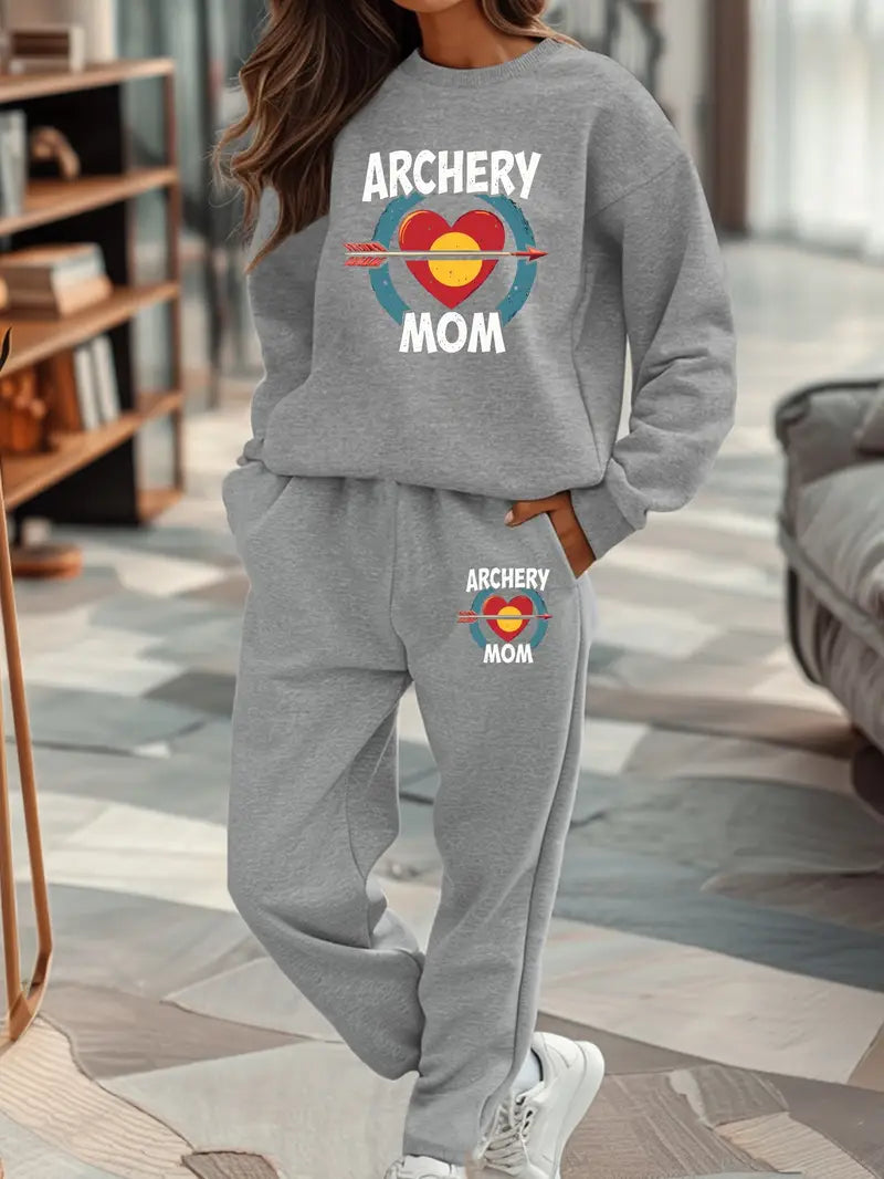 Composé d’un sweat à col rond et d’un pantalon assorti, cet ensemble doux et chaud est décoré d’un joli motif "Archery Mom" avec cible et flèche.