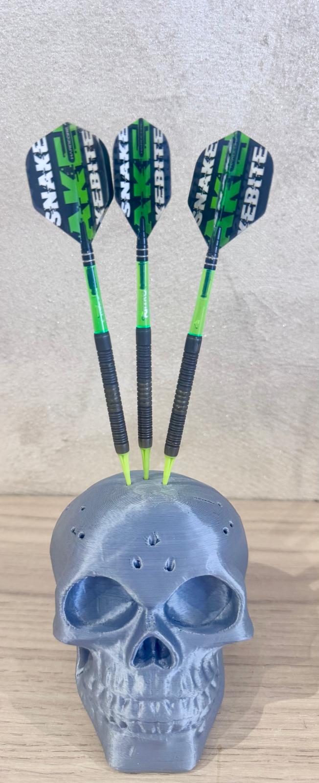 Ajoutez une touche originale et percutante à votre espace de jeu avec ce porte-fléchettes en forme de tête de mort, imprimé en 3D.
