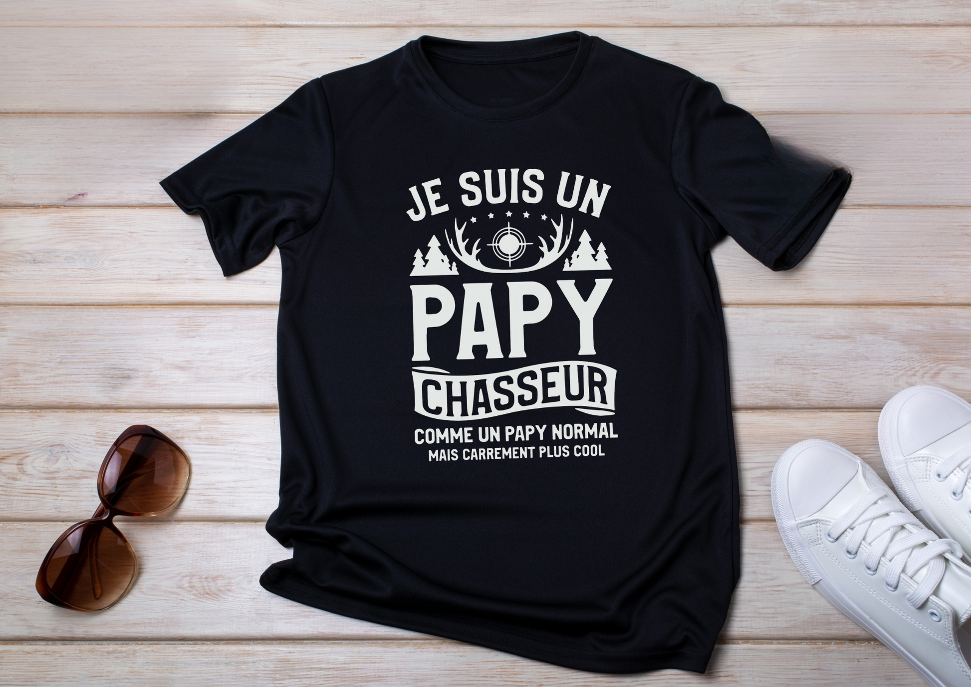 🛒 Un tee-shirt à offrir ou à s’offrir pour rappeler que le plus cool des papys, c’est le chasseur !