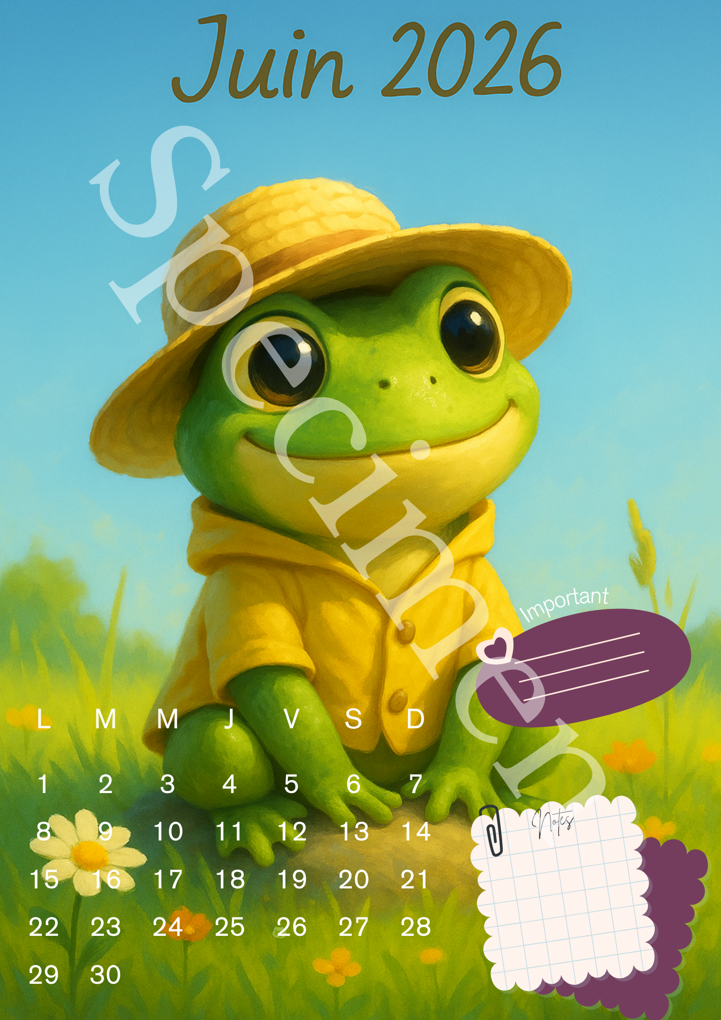 Faites entrer la bonne humeur dans votre quotidien avec ce Calendrier 2026 Grenouille rempli de charme, de douceur et de couleurs !